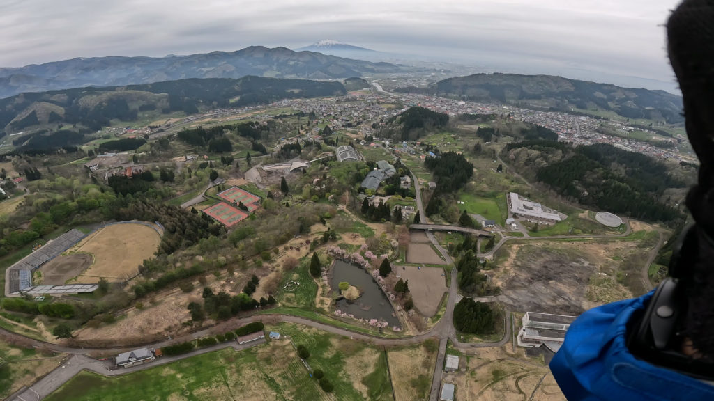 ぶっ飛び2本でしたが、ランディング下の公園の枝垂れ桜を上空から花見と
