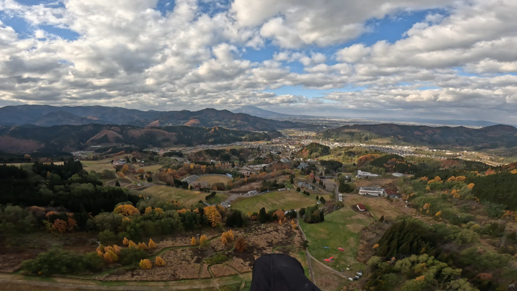 恒例のハロウィン?仮装イベントを見ながらフライト。上層強め、下層弱めの風。少し上層の影響が入るテイクオフは強くなったり弱くなったり。