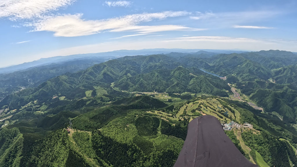 少々用事があり、ちょっと早いが午前勝負で何とかワンサーマル上げ切りたいとタイミング見てテイクオフ。予想通りちょっと早いので最初のサーマル逃したらぶっ飛びかねないコンディション。逃さず捕まえて何個かサーマル乗り継いで神沢前からそのまま1300mまで上げ切る。